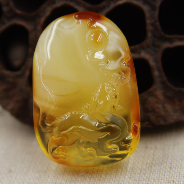 琥珀挂件—蜜蜡俏雕龙...