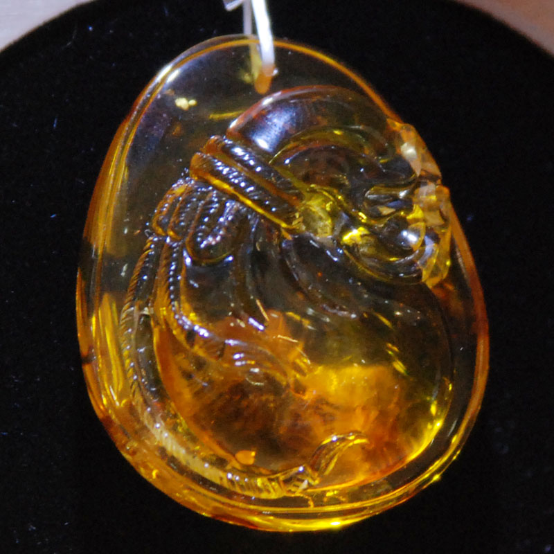 琥珀挂件—带皮雕钱袋...
