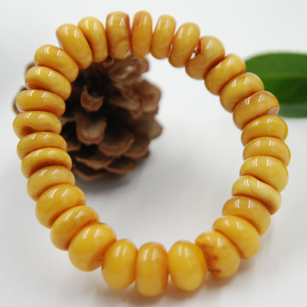 琥珀手串—老蜡双面皮扁仔